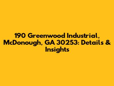Let's dive into everything you need to know about 190 Greenwood Industrial, located in McDonough, Georgia 30253. Whether you're considering this location for business, investment, or simply curious about the area, this comprehensive guide will provide you with valuable insights.