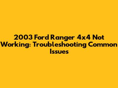 2003 Ford Ranger 4x4 Issues: What's Wrong?