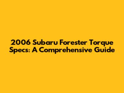 2006 Subaru Forester Torque Specs: A Comprehensive Guide