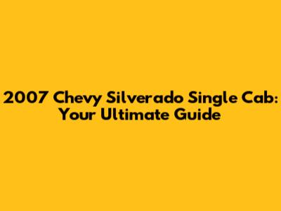 2007 Chevy Silverado Single Cab: Everything You Need To Know