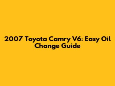 2007 Toyota Camry V6: Easy Oil Change Guide