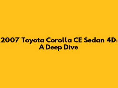 Hey guys! Let's take a closer look at the 2007 Toyota Corolla CE Sedan 4D. This trusty vehicle has been a favorite for many, and for good reason. We're going to explore everything about it, from its specs to its reliability, ensuring you have all the information you need. Whether you're considering buying one or just curious, buckle up!