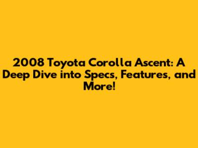 2008 Toyota Corolla Ascent: Specs, Features, And More!