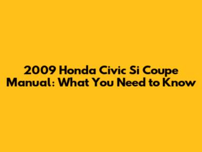 2009 Honda Civic Si Coupe Manual: What You Need To Know