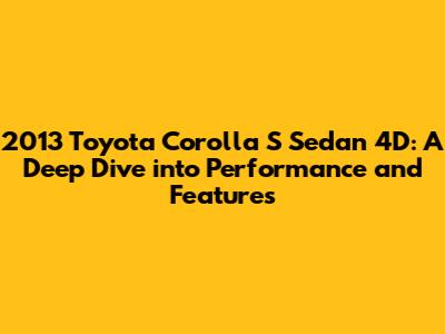 Hey car enthusiasts! Today, we're diving deep into the 2013 Toyota Corolla S Sedan 4D. This is more than just a car; it's a reliable, fuel-efficient, and surprisingly sporty ride that has stood the test of time. We'll be looking at everything from the horsepower (HP) to the features that make this Corolla S a popular choice. So, buckle up, and let's explore what makes this model tick!