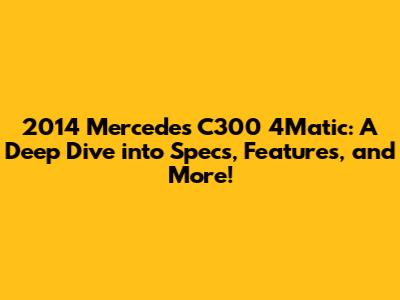 Hey car enthusiasts! Today, we're diving headfirst into the world of the 2014 Mercedes-Benz C300 4Matic, a car that's still turning heads and providing a luxurious driving experience even years after its release. We're going to break down everything you need to know, from its performance specs to the cool features that make it a standout in its class. So, buckle up, and let's get started!