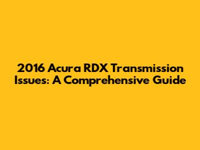 2016 Acura RDX Transmission: Issues & Solutions