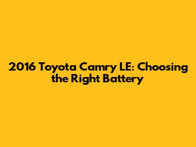 Hey guys! Let's dive into the world of batteries for your 2016 Toyota Camry LE. Choosing the right battery is super important for keeping your car running smoothly. We'll cover everything you need to know to make an informed decision, ensuring your Camry stays reliable for years to come. Let's get started!