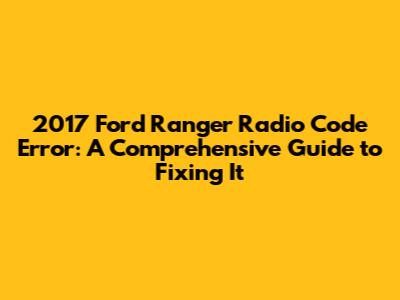 2017 Ford Ranger Radio Code Error: Troubleshooting & Solutions