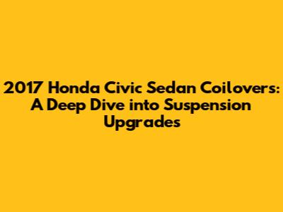 Hey car enthusiasts! Ever thought about spicing up your ride, making it handle like a dream, and giving it that head-turning stance? If you're rolling in a 2017 Honda Civic Sedan, then you're in the right place, because we're diving headfirst into the world of coilovers. Specifically, we're talking about how these amazing suspension upgrades can transform your Civic. So, buckle up, and let's get into the nitty-gritty of 2017 Honda Civic Sedan coilovers!
