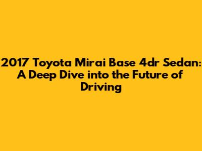Hey guys! Today, we're diving deep into the 2017 Toyota Mirai Base 4dr Sedan. This isn't just another car; it's a bold statement about the future of driving, powered by hydrogen fuel cell technology. Buckle up as we explore everything that makes this sedan a unique and eco-conscious choice. We’ll cover everything from its groundbreaking fuel cell system to its sleek design and tech-savvy features, providing a comprehensive overview for anyone considering making the switch to a zero-emission vehicle. Whether you're an environmental enthusiast, a tech geek, or simply looking for a different kind of driving experience, the Mirai offers a compelling package that challenges conventional notions of what a car can be. So, let's get started and see what makes the 2017 Toyota Mirai a true pioneer in the automotive world.
