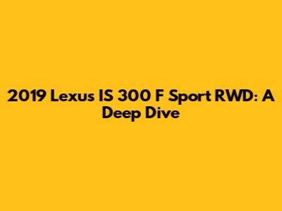 Hey guys! Let's dive into the 2019 Lexus IS 300 F Sport RWD, a car that blends luxury, performance, and head-turning style. This model year brought some exciting updates, especially for those who appreciate a sporty driving experience. We're going to explore everything from its engine and performance to its interior, features, and overall value. Buckle up, because we're about to take a detailed look at what makes this car so special!