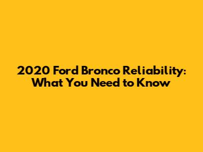 2020 Ford Bronco Reliability: What You Need To Know
