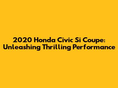 2020 Honda Civic Si Coupe: A Performance Enthusiast's Dream
