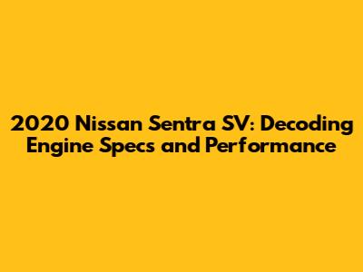 2020 Nissan Sentra SV: Engine Specs & Performance