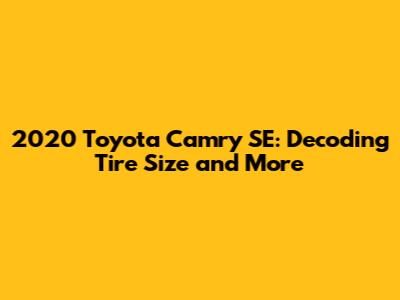 2020 Toyota Camry SE: Decoding Tire Size And More