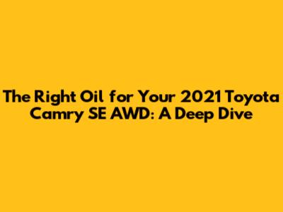 Hey guys! So, you've got yourself a sweet 2021 Toyota Camry SE with All-Wheel Drive, and you're wondering about the perfect oil type to keep that engine purring like a kitten. You've come to the right place! Choosing the right engine oil is super crucial for the longevity and performance of your car. It's not just about picking any old bottle off the shelf; it's about understanding what your specific ride needs. Toyota engineers designed this engine with specific lubrication requirements in mind, and sticking to those recommendations is key to avoiding costly repairs down the line. Think of oil as the lifeblood of your engine – it reduces friction, cools down critical parts, cleans away gunk, and prevents corrosion. Using the wrong kind can lead to increased wear and tear, reduced fuel efficiency, and even major engine damage. We're going to break down exactly what your 2021 Camry SE AWD needs, why it matters, and what you should look out for when you head to the auto parts store.