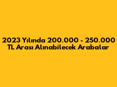 2023 yılında 200.000 - 250.000 TL aralığında birçok farklı araba seçeneği bulunuyor. İhtiyaçlarınız, beklentileriniz ve bütçeniz doğrultusunda, size en uygun olanı seçebilirsiniz. Unutmayın, doğru araştırma ve karşılaştırmalarla, hayallerinizdeki arabaya kavuşabilirsiniz. Umarım bu rehber, araba seçimi konusunda size yardımcı olmuştur. İyi sürüşler!