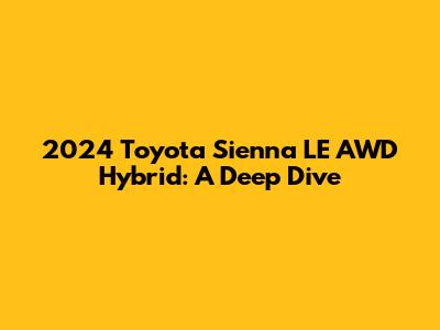 Hey there, car enthusiasts! Let's dive into everything you need to know about the 2024 Toyota Sienna LE AWD Hybrid. This isn't just your average minivan; it’s a fuel-efficient, family-friendly powerhouse that’s ready for anything. We're going to cover all the important aspects, from performance and fuel economy to interior features and safety tech. Whether you're a parent looking for the perfect family vehicle or just someone who appreciates a well-engineered hybrid, you're in the right place. So, buckle up, and let’s get started!