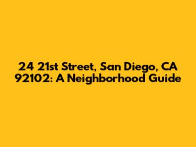 Hey guys! Ever find yourself curious about a specific address and the neighborhood it's nestled in? Today, we're diving deep into 24 21st Street, San Diego, CA 92102. This isn't just about an address; it's about uncovering the vibe, the amenities, and the overall essence of this little corner of San Diego. Whether you're considering moving here, just curious, or trying to get a feel for the area, this guide is for you. So, let’s get started and explore what makes this location tick!