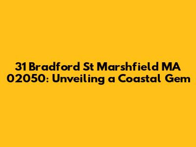 Hey everyone, let's dive into a detailed exploration of 31 Bradford St in Marshfield, MA 02050. This isn't just a random address; it's a potential home, a piece of real estate, and a spot brimming with coastal charm. We're going to unpack everything you need to know, from its location and local amenities to what makes this area so special. Ready to explore? Let's get started!