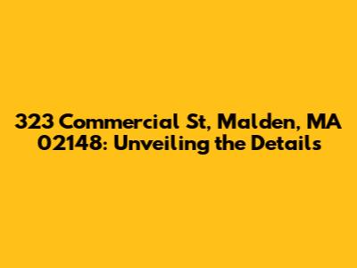 Alright, guys, let's dive into everything you need to know about 323 Commercial St, Malden, MA 02148! This address probably popped up because you're curious about a property, a business, or something else located there. Whatever the reason, we’re here to give you the lowdown. We'll explore what makes this location tick, including potential property details, nearby amenities, and how it all fits into the vibrant Malden landscape.