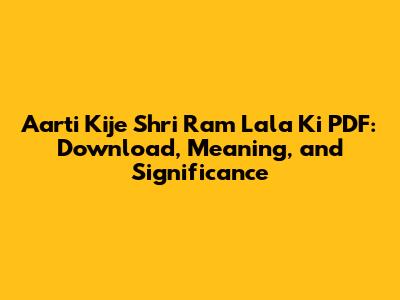 Aarti Kije Shri Ram Lala Ki PDF: Download & Meaning