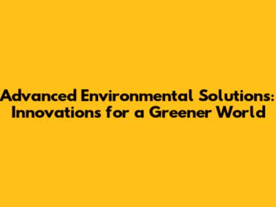 Advanced Environmental Solutions: Innovations For A Greener World