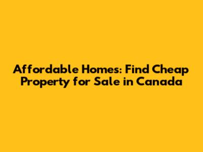 Affordable Homes: Find Cheap Property For Sale In Canada