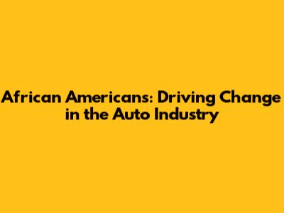 African Americans: Driving Change In The Auto Industry