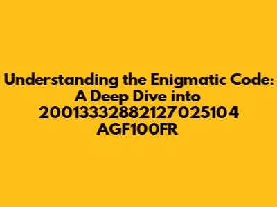 Let's break down the components of the code 20013332882127025104 AGF100FR to understand the significance of each segment.
