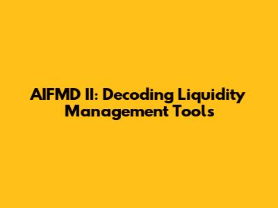 Hey there, finance folks! Let's dive into something super important: liquidity management for Alternative Investment Funds (AIFs), especially with the AIFMD II (Alternative Investment Fund Managers Directive II) update. This isn't just some dry, boring topic; it's about making sure your investments are safe, sound, and ready for action when you need them. So, what exactly are liquidity management tools (LMTs), and why do they matter so much under AIFMD II? Basically, LMTs are the secret weapons that AIF managers use to keep their funds running smoothly, especially during turbulent times. Think of them as the safety nets that prevent a fund from getting into a liquidity crunch, ensuring investors can get their money back when they need it and that the fund can meet its obligations. AIFMD II is significantly beefing up the requirements around these tools, so it's a critical area to understand. We'll explore various tools, how they work, and why they're essential for modern fund management. Understanding these tools isn't just for compliance; it's about building a robust and resilient investment strategy. Let's get started. We'll explore the tools, how they work, and why they're crucial for today's fund management. Ready to learn?