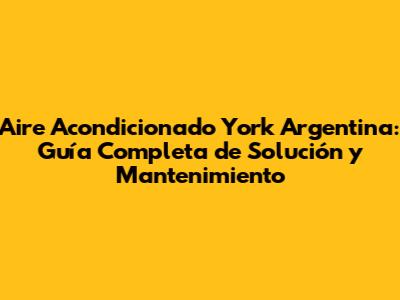 Aire Acondicionado York Argentina: Guía Completa De Solución Y Mantenimiento