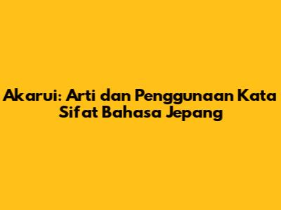 Akarui (ๆ˜Žใ‚‹ใ„) adalah kata sifat bahasa Jepang yang punya arti luas, mulai dari terang, ceria, optimis, hingga terbuka. Kata ini sering digunakan untuk menggambarkan suasana, kepribadian, atau harapan yang positif. Dengan memahami arti dan penggunaannya, kamu bisa lebih lancar berkomunikasi dalam bahasa Jepang dan lebih memahami budaya Jepang yang menjunjung tinggi semangat positif.