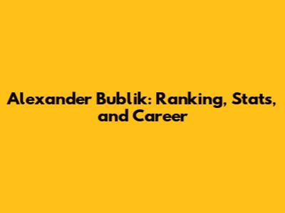 Alexander Bublik: Ranking, Stats, And Career