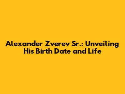 Alexander Zverev Sr.: Unveiling His Birth Date And Life