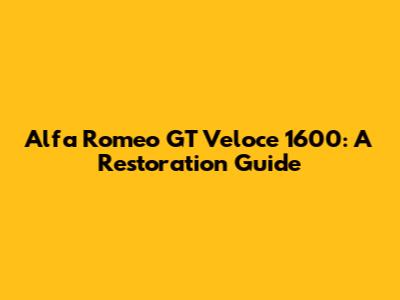 Alfa Romeo GT Veloce 1600: A Restoration Guide