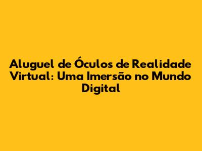 Aluguel De Óculos De Realidade Virtual: Guia Completo