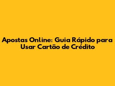 Apostas Online: Guia Rápido Para Usar Cartão De Crédito