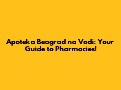Apoteka Beograd Na Vodi: Your Guide To Pharmacies!