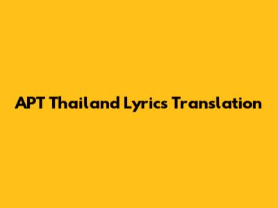APT Thailand Lyrics Translation: Understand The Song