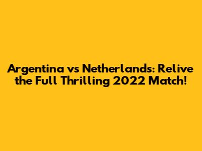 Argentina Vs Netherlands: Full Thrilling 2022 Match!
