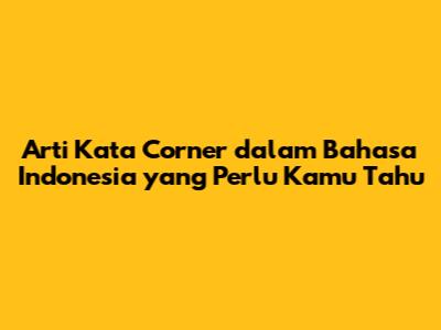 Arti Kata 'Corner' Dalam Bahasa Indonesia Yang Perlu Kamu Tahu