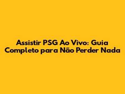 Assistir PSG Ao Vivo: Guia Completo Para Não Perder Nada