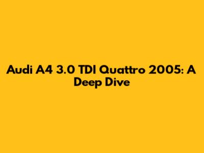 Hey guys! Today, we're diving deep into the Audi A4 3.0 TDI Quattro 2005. This car isn't just a ride; it's a statement. We're talking about a blend of luxury, performance, and that legendary Audi engineering. If you're considering buying one, already own one, or are just a car enthusiast, this is for you. We'll cover everything from its specs and performance to common issues and overall reliability. Let's get started!