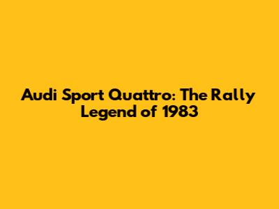 Hey guys, let's dive into the amazing world of the Audi Sport Quattro, specifically its epic run in the 1983 rally season! This car isn't just a vehicle; it's a legend, a beast of engineering, and a symbol of dominance in the world of rallying. The Audi Sport Quattro changed the game, and its impact is still felt today. We are going to break down everything that made this car so special, from its groundbreaking technology to the incredible drivers who tamed it on the rally stages. Get ready for a deep dive into the history, the tech, and the glory of the 1983 Audi Sport Quattro.