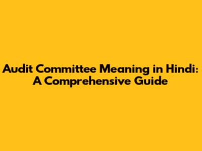 Audit Committee Meaning in Hindi: Detailed Explanation