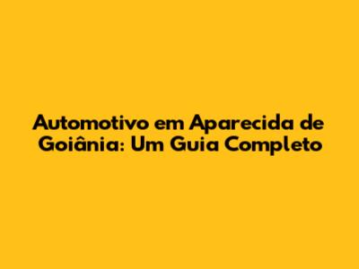 Automotivo Em Aparecida De Goiânia: Tudo O Que Você Precisa Saber!
