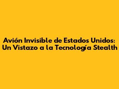 Avión Invisible De Estados Unidos: Un Vistazo A La Tecnología Stealth