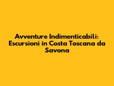 Ciao amici! Siete pronti per un'avventura che vi porterà alla scoperta delle meraviglie della Costa Toscana, partendo comodamente da Savona? Preparatevi a vivere esperienze indimenticabili tra mare cristallino, borghi medievali, natura incontaminata e sapori autentici. In questo articolo, vi guiderò attraverso le più belle escursioni che potrete fare, offrendovi consigli utili, itinerari dettagliati e suggerimenti per rendere il vostro viaggio ancora più speciale. Quindi, allacciate le cinture e preparatevi a esplorare la Toscana in tutta la sua magnificenza!